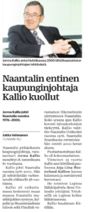 Hän oli vielä tuore kaupunginjohtaja eikä kukaan halunnut hänen lähtevän mihinkään eikä hän luvannut jättää Naantalia paitsi Rovaniemelle, jos se onnistuisi. Onneksi Naantalille ettei hän lähtenyt, sillä hänelle oli monta tehtävää Naantalissa, kuten Turun Sanomien oheisessa Jukka Vehmasen uutisessa hyvin kerrottiin.