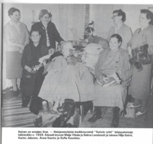 Hiljaisena hetkenä käydessäni Tiiliholvissa nykyisessä NTY:n kokoustilassa muistelin linja-automatkaa. Harvat matkat olivat tapauksia sinänsä. Työväenyhdistyksen naisjaosto oli lähtenyt juhlistamaan sotaorvon kummilapsensa (Salo taisi olla pjan nimin) ripille pääsyä Messukylään. Linja-autossa oli hiljainen tunnelma, kirkossa seremoniaa seurattiin ja sitten syötiin pojan kotitalon pihalla erinomaista lihafärssiä. Äidilleni ihmettelin miten heillä on varaa tällaiselle porukalle tarjota, sain kuitenkin kuulla, että naisjaosto oli rahoittanut syömisen kustannukset.