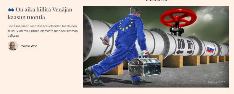 Viisas Martin Wolf sanoo sen, jonka me tiedämme.: Kaasusta on luovuttava. Eikä se ole läheskään niin kovaa kuin oli EU:n erityisesti Saksan tarjoamat lääkkeet finanssikriisin aikan: