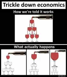 Käytäntö ei tue tuota tricle down eli yltäkylläisen rikkauden valumisen teoriaa.