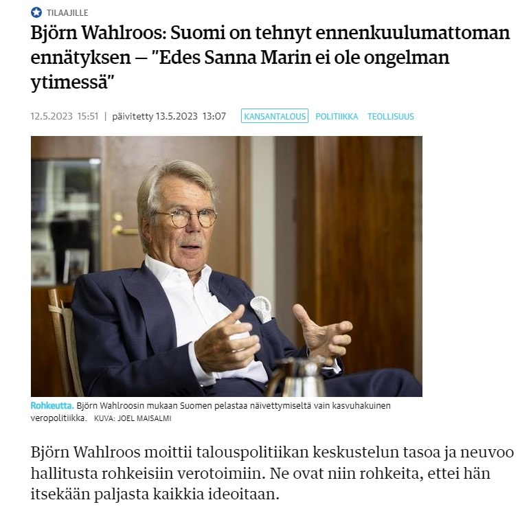 Tämä oli prologi Björn Wahlroosin Flooran päivän haastattelun aiheuttamiin tuntemuksiini.