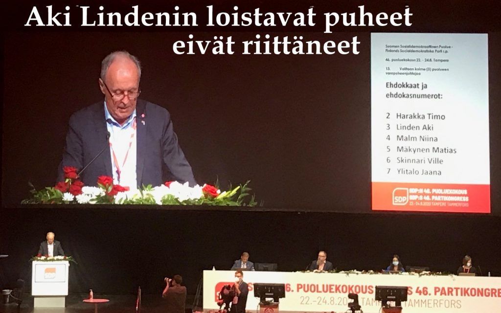 Tampereen puoluekokouksessa Varsinais-Suomen ehdokas Aki Linden piti parhaat puheet.