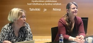 Kokouksen vallinnat onnistuivat hyvin. Toiminnanjohtaja Talvikki Jorin vaaleja ja Niina Alhon Varhaan ja Piia Elon Turku koskevien alustusten jälkeen keksustelttiin innostuneesti katse vahvasti eteenpäin suunnattuna.