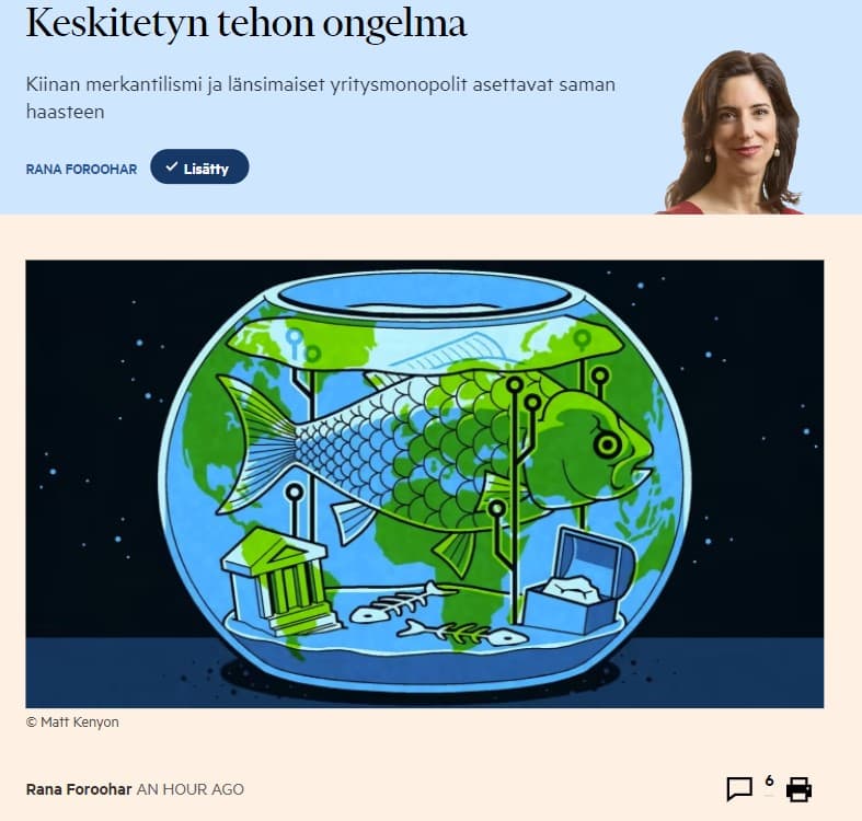 Rana Foroohar valaisee keskittymisaihetta FT 8.5.2023 kirjoituksessaan: