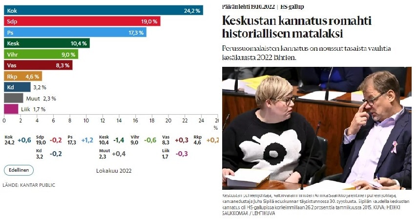 Mutta eivät nämä voiton kauas kanna; lisää halutaan ja vaatimusten määrä on pohjaton. Ja kun tämä ei tuottaa huonoa gallup-kannatusta, niin sitten nostetaan erilaisia maa- ja metsätalousasioita ja identiteettipolitiikkajuttuja pintaan. Se kannettu vesi menee perussuomalisten kaivoon.