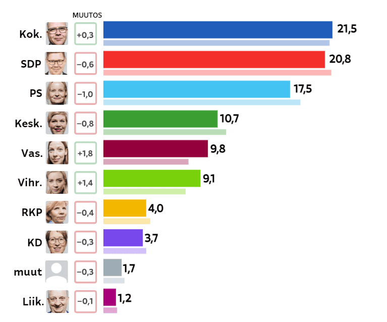 Sdp on vaihtanut johtonsa eikä se taida olla merkittävä tekijä paitsi, että ehkäpä vasemmistoliitto ja vihreät ovat hyötyneet Sanna Marinin siis vetovoimaisen naisjohtajan poistuttua.
