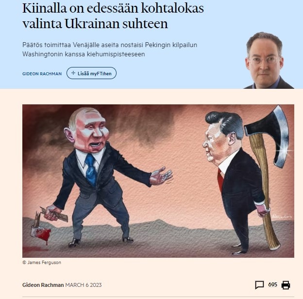 Viime viikolla Financial Timesissa Zhou Bo, entinen kansan vapautusarmeijan eversti, kirjoitti : ”Jos Peking ottaa Moskovan puolen konfliktissa, olemme jo kolmannen maailmansodan kynnyksellä.”Näin sanottuna Kiinan päätös toimittaa Venäjälle aseita kuulostaa käsittämättömältä. Ja silti Yhdysvaltain hallitus uskoo, että Pekingissä on meneillään vakava keskustelu – ja että Kiina saattaa lopulta tehdä tämän kohtalokkaan päätöksen.