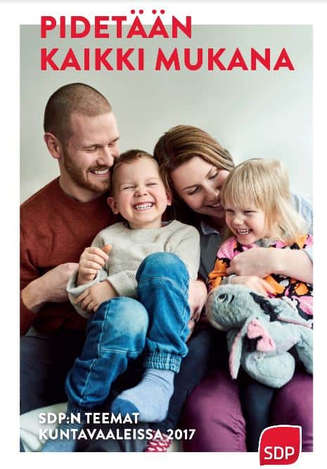 SDP pitää aina kiinni ihmisten tasa-arvoisesta kohtelusta. Me haluamme rakentaa oikeudenmukaisempaa ja inhimillisempää yhteiskuntaa. Sellaista Suomea, jossa jokaista ihmistä arvostetaan ja kunnioitetaan. Me haluamme vahvistaa turvaa ja toivoa tulevaisuuteen, luoda hyvinvointia jokaiseen Suomen kuntaan. Pidetään kaikki mukana.