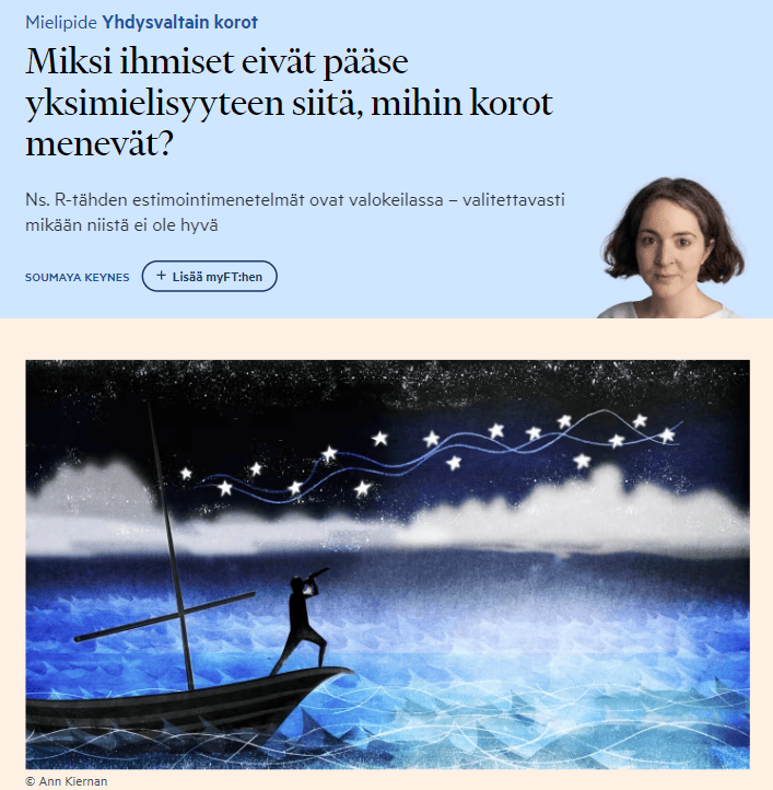 Kiinnostusta koron kehitykseen on laajalti ja monet ovat aika usein varmoja. Luultavasti varmuutta lisää joko tietämättömyys tai toive. Jos sen sijaan tuntee epävarmuutta on hyvä lue alla oleva lainaus Soumaya Keynesin kolumnista USA:n markkinoita kosken.