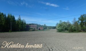 Käyn vielä Keitilän kylärannasta polkua pitkin pellon laitaan, josta nappaan maalaismaiseman muistuttamaan, että tämänkin homman piti EU:n toimesta loppua ja kauan sitten.