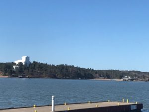 Kultarannan saunan lumipuku on riisuttu. Turun linnan muotoinen graniittilinna on vielä hupussa – Mutta kyllä Naantaliin kannattaa tulla -sauna taitaa olla Kultarannan paras paikka.