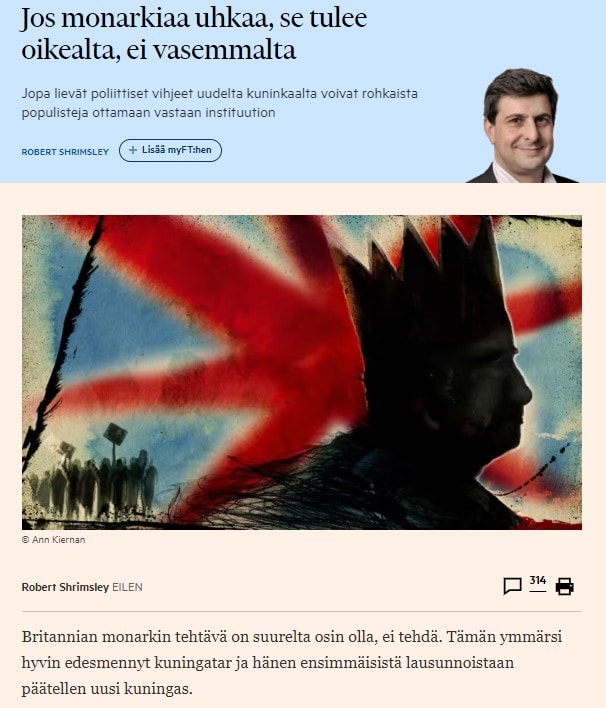 Edesmennyttä kuningatar Elisabet nousi yhdeksi piirikokouksen esiin tulleeksi esikuvaksi. Tällainen tapaus ja kuvakaappauksen mukaisen artikkelin lukeminen kertovat, että maailma ei entisellään ole eikä ehkä tule olemaan.