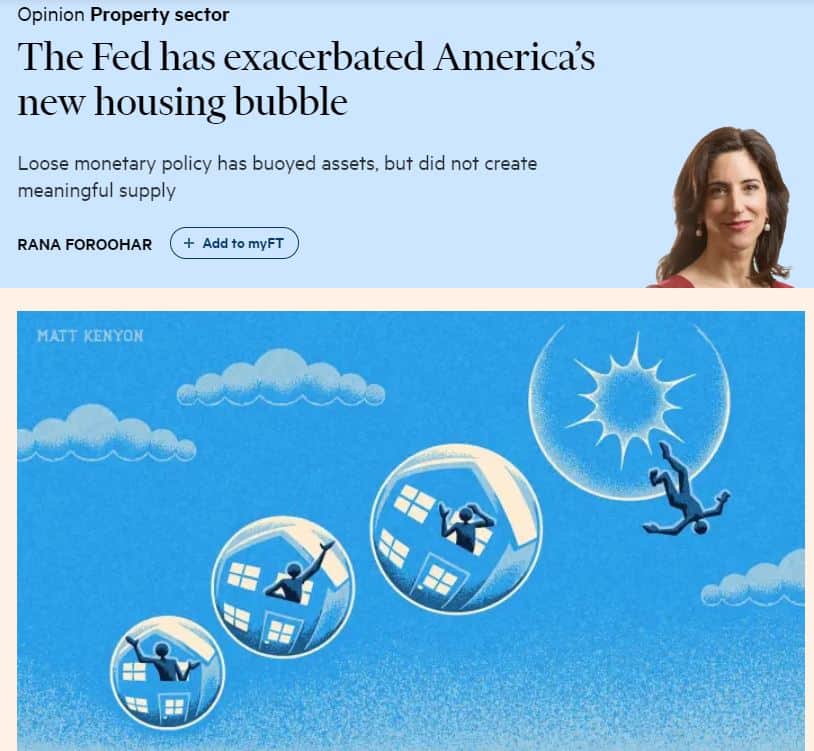 Näin tiivistää FT:ssä Rana Foroohar näköpiirissä olevan uhan. Hän näkee, että inflaatiotekijöinä asumiskustannukset ovat irronneet muusta kehityksestä. Ja kuten tällä palstalla artikkelissa kerrotaan on ilmiöllä monta vaikutusta.