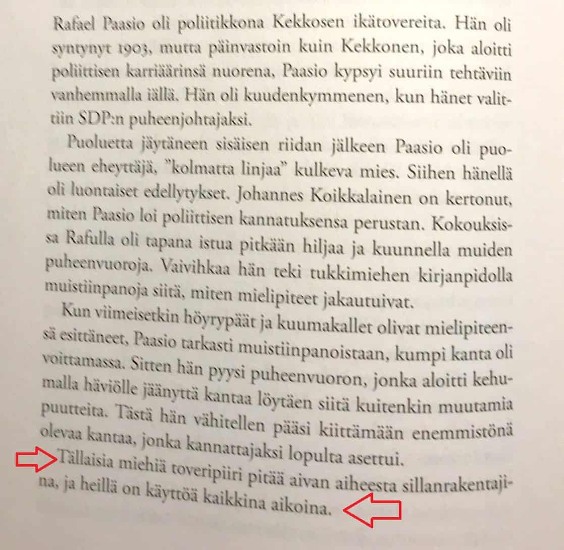 huomautuksia. Kun Paasio valittiin Tannerin jälkeen vuonna 1963 SDP:n