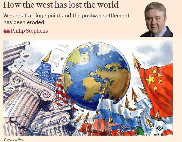 maailman voimalle ja arvovallalle. Gideon Rachman FT 10.10.2016