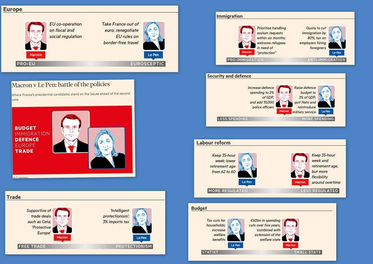 Financial Times selvitti presidenttiehdokkaiden politiikkaeroja seuraavalla kuva koosteella: