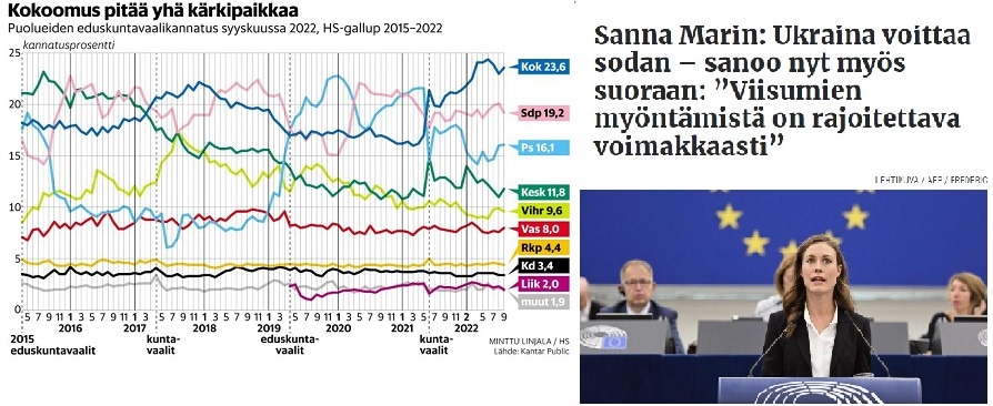 Puoluekannatus HS20220914 ja Sanna Marin 20220914