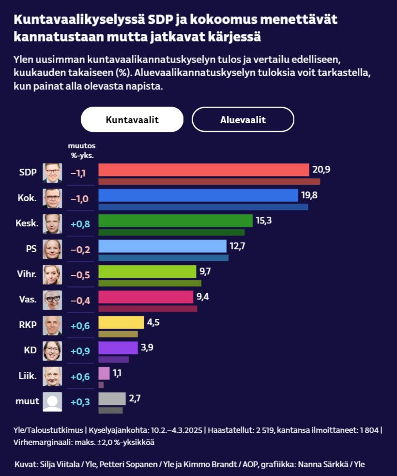 Ylen mittaus_ Isoista puolueista keskusta kovin nousija alue- ja kuntavaaleissa – hönkii alueilla jo kokoomuksen niskaan _ Alue- ja kuntavaalit 2025 _ Yle