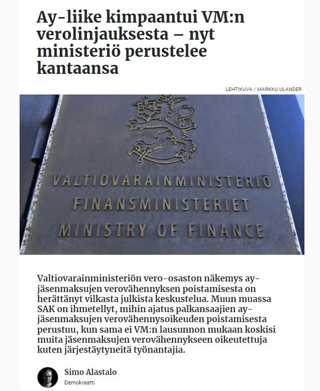 Epäilen, että taustalla on persu-työmiehen viestintäkikkailu. Hän tulee ja pelastaa ay-väen! Niin ja siihen kyuoroon pääsevät kokoomusvetoiset akavalaisetkin. Torjutaan itse rakennettu uhka ja ollaan sankareita kaikki! Taas saadaan suuri voitto, jota juhlitaan ja sen varjolla voi sitten viedäkin kaikki muut oikeistoideat läpi.