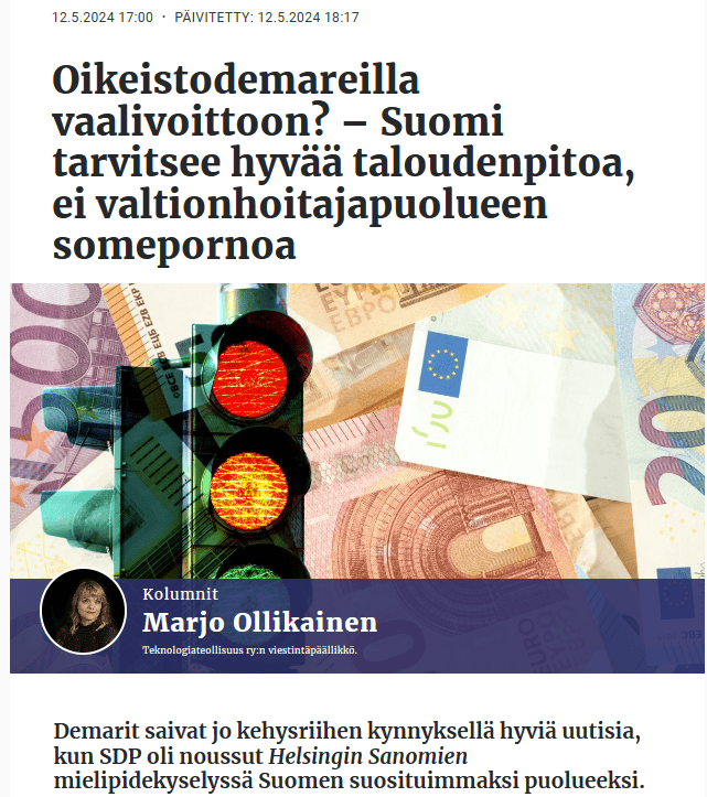 Mutta lukekaa Marjo Ollikaisen Snellmanin päivän kolumni Demarista