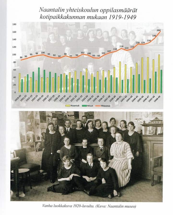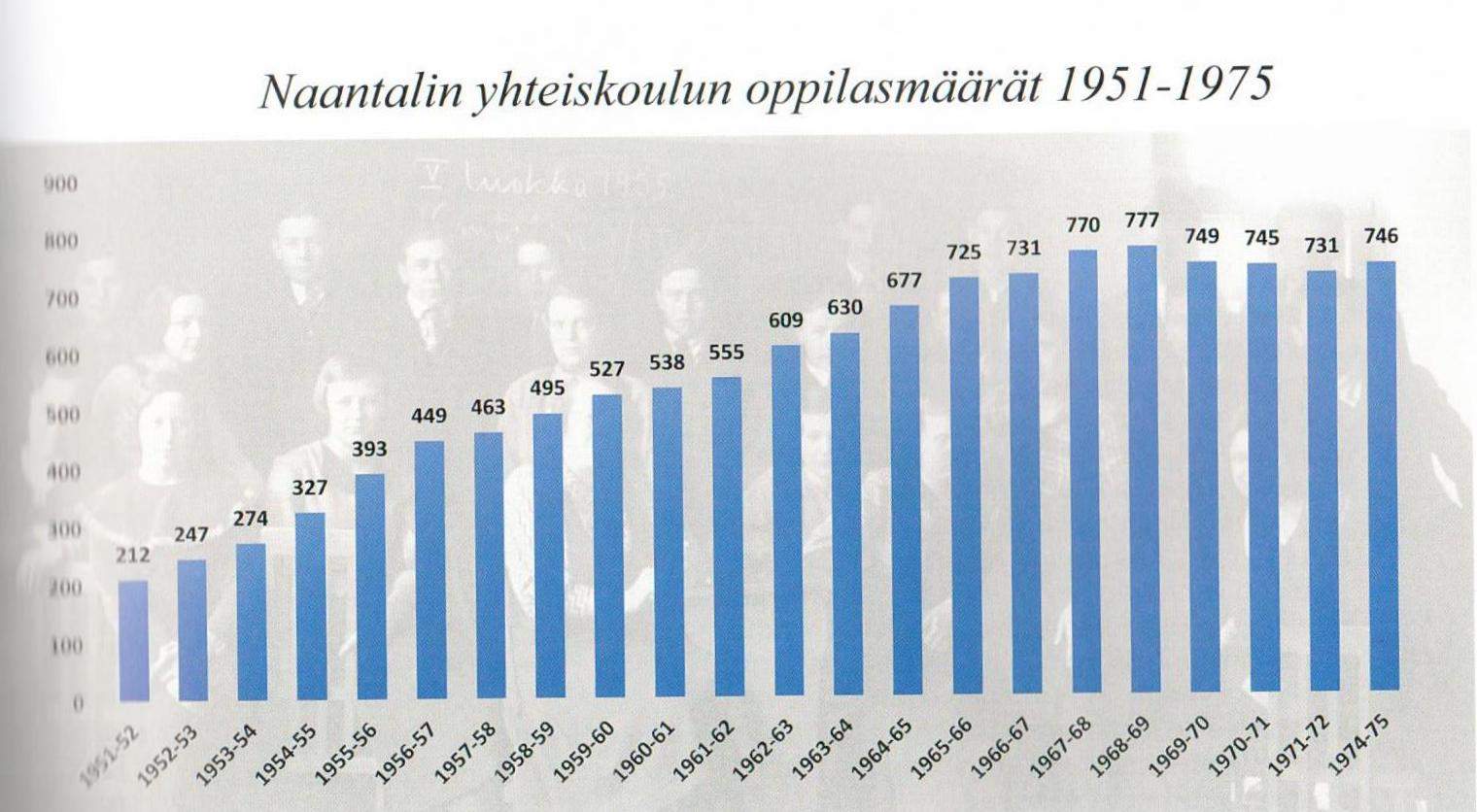 Kirjassa havainnollisesti grafiikan avulla oppilasmäärän muutokset. Samoin