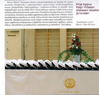 Kirjassa rehtori Mauno Kesäläinen arvioi koulun siirtymisen