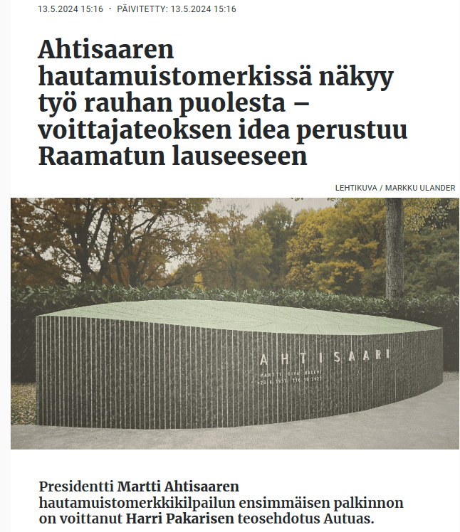 Martti Ahtisaaren muistomerkki ei paljon sanoja kaipaa; se on kaunis ja osuva – onnistunut.