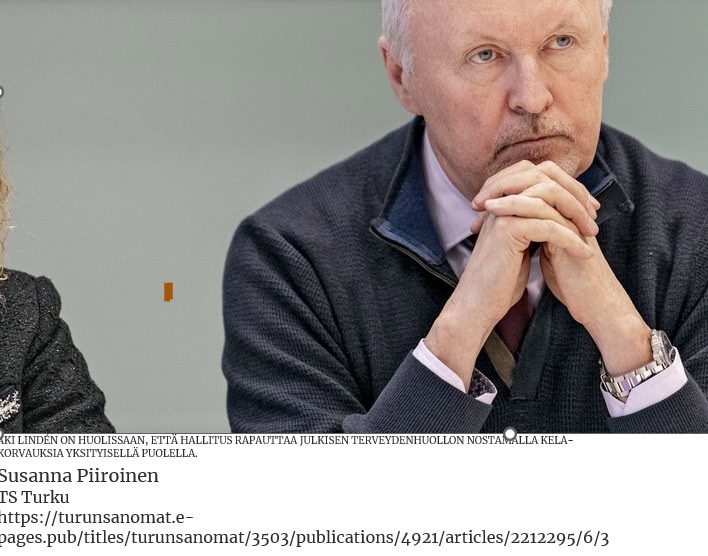 Susanna Pirin Uutisessa , josta artikkelikuvakaappaus Aki Lindeniä referoidaan: