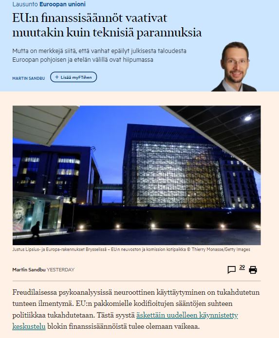 Martin Sandbu yrittää FT:ssä parantaa maailmaan ja erityisesti EU:ta. Ajatukset ovat kannatettavia, mutta …