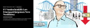 Kaikki Lars Fruergaard Jørgensenistä on aliarvioitu. Tanskalaisen huumekonsernin Novo Nordiskin toimitusjohtaja varttui sikatilalla Jyllannissa ja jo varhaisesta iästä lähtien hänen odotettiin siivoavan eläimet. Suurin osa hänen kilpailijoistaan matkustaa yksityisillä koneilla tapaamisilleen, mutta hän odottaa kaupallisia yhteyksiä. Pitkä, laiha ja mietteliäs Jørgensen on kaukana perinteisestä mielikuvasta pöyristyttävästä, kauppaa tekevästä toimitusjohtajasta: hän aloitti uransa taloustieteilijänä terveydenhuolto- ja suunnitteluosastolla.