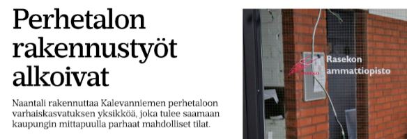 Rannikkseudussa puheenaiheet palstalla esiteltiin Kalevaniemen perhetalon työmaata.