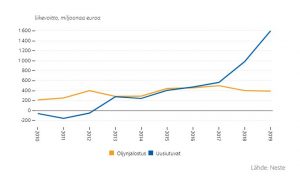 Nesteen vanhanaikainen  öljynjalostus  on tehnyt kymmenessä   vuodessa oheisesta kuvasta arvioituna noin 4 miljardin euron tuloksen. Tavoiteltu säästö 40 miljoonan säästö on prosentin luokkaa.