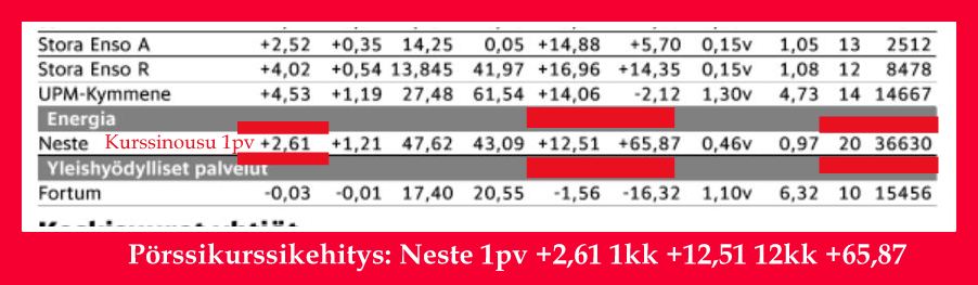 Pörssin arvonnousu kuukaudessa on ollut yli 12,51 %  ja eilisen  päivän nousu yli 2,61%.