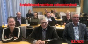 Nyt oli erityistä syytä hymyyn, kun sosialidemokraattisen valtuustoryhmän puheenjohtaja Sirpa Hagsbergiä muistettiin viime viikkoisen syntymäpäivän johdosta.