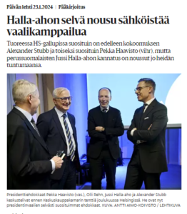 Mediatilaa ovat hallinneet Halla-ahon taktisesti älykkäät pelinavaukset. En ole huomannut Stubbia liehiteltävän. Sen sijaan hänen impulsiiviset ristiriitaisuutensa menneiltä vuosilta ovat olleet näyttävästi esillä. Siksi hänen suosionsa on yllättävä.