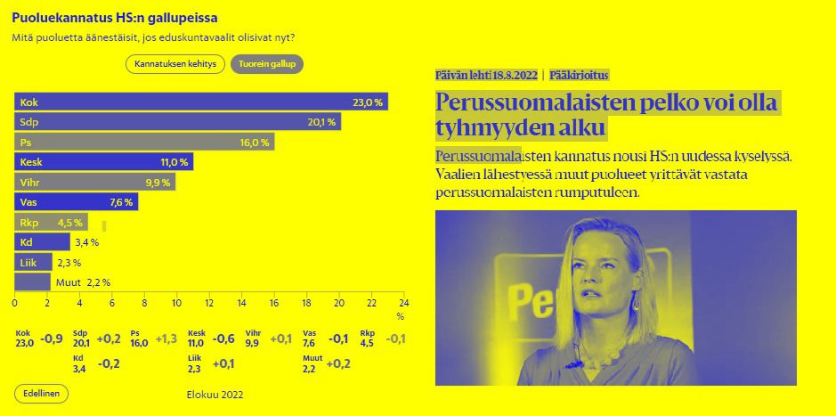 Puoluekannatus HS 20220818