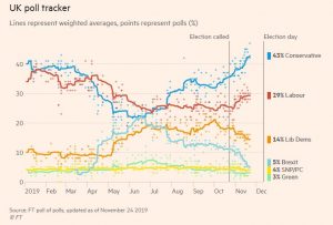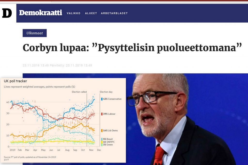 Kuten uutisten lopussa todetaan on työväenpuolue kärsimässä kovan tappion vaaleissa. Boris Johnsonin konservatiivit ovat tämän hetken tietojen valossa saamassa enemmistön ja Labour menettäisi runsaasti paikkoja.