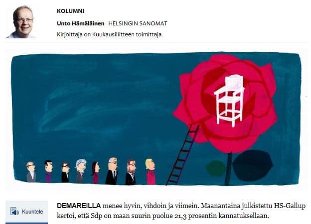 viime vaalien jälkeen povasin mahdolliseksi demarien pelastajaksi (HS