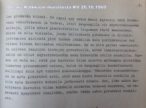 Neuvottelu alkoi sitten kummallisesti: Jaakko Kalkas sanoi, että nyt sosialidemokraattien on vaan syytä hyväksyä Karvetin vaatimus, sillä hän ymmärtää täysin myyjän vaatimuksen. Kalkas oli mahtipontisesti kirjoittanut (ote ohessa) valtuustolle. Korkeasta hinnasta puhumine on yhtä turhaa jahkailua kuin postimaksujen tai viina hinnan kalleudesta valittaminen