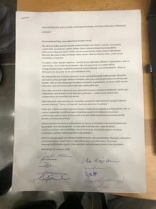 Allekirjoittajina kymmen kokoomuslaista+ yksi vasemmistolainen.