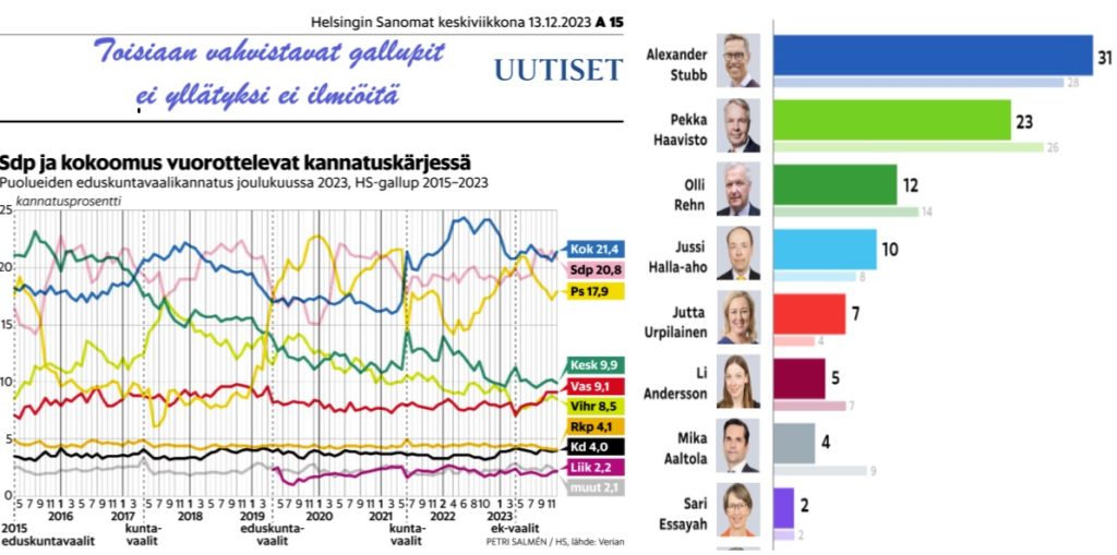Gallupit vahvistavat suuntausta, joka näyttää kallistuvan oikealle ja se varmaan on suuren itäisen naapurimme toiveiden mukaista.