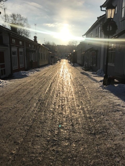 Ja ongelma on kumpuraisuus ja uurteisuus, joka johtuu suojalla ajetuista autojen pyöräurista, jotka pakkasella on jäätyneet. Hiekotus sepelit valut urienpohjalle ja niiden korkeammalla olevat kuperat kohoumat ovat vaarallisen liukkaita ja hankalia kävellä. Tiet ovat autoillekin yhtä töyssyä. Vaikea uskoa, että elämme korkean teknologisen aikakaudella.