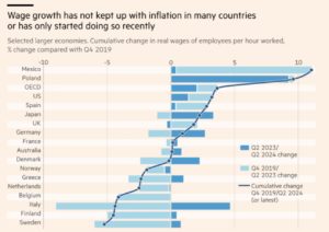 Suomen palkat ovat jääneet jälkeen muiden maiden vauhdista ja tosiasiallisesti reaalinen palkkataso on laskenut kuten oheinen FT:ssä ollut grafiikka kertoo Suomi on reaalipalkkakehityksessä yli 5 prosenttia Saksasta jäljessä.