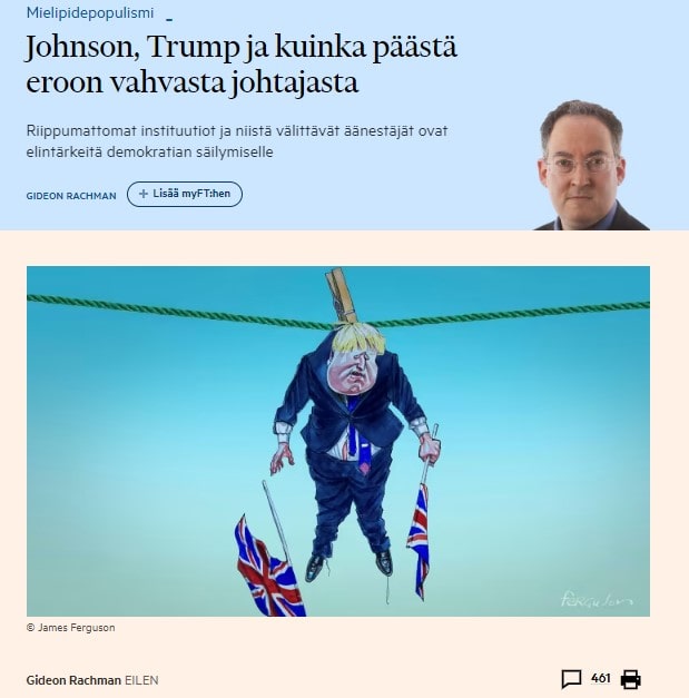 Jono Johnsonista Trumpiin ja sitten Trumpista muihin vahvoihin johtajiin – kuten Recep Tayyip Erdoğaniin, Narendra Modiin, Xiin ja Putiniin – on myös lyhyempi kuin usein arvostetaan. Järjestelmät, joissa nämä johtajat toimivat, ovat hyvin erilaisia, mutta heidän poliittiset tyylinsä ovat hämmästyttävän samanlaisia.