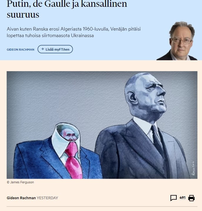 Putin ja De Gaulle FT Rachman 20230814