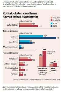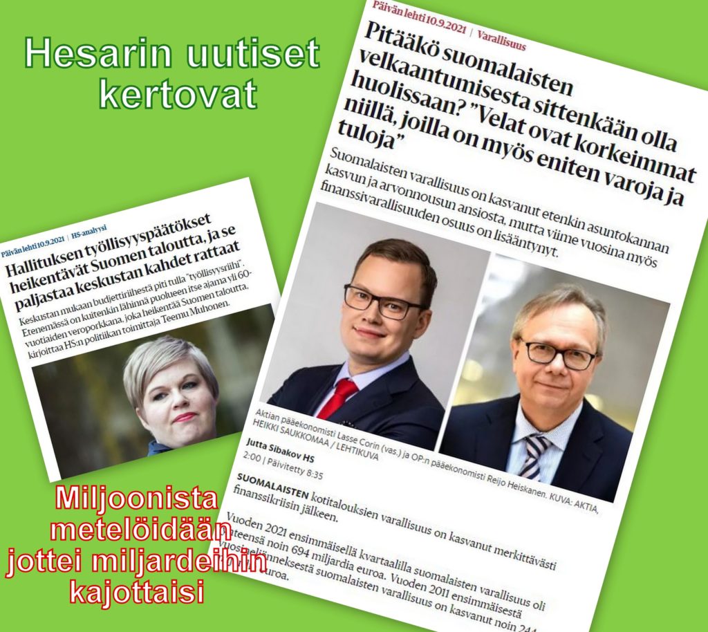 En selitä, mutta tutustukaa oheiseen oivalliseen HS:n grafiikkaan. Se kerto, että valtion velkaantumisen hedelmät ovat menneet varallisuuden yksityisten kasvuun ja kun tiedämme varallisuuden jakautumisen, niin yksityishenkilöiden varakkaimmat eivät ole taakaan kantoon osallistuneet vaan ovat itselleen rohmunneet muiden kärvistellessä . Tämä on väärin.