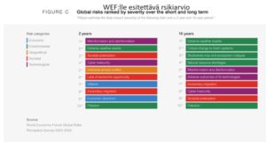 Sipilä jutussaan referoi WEF:n Davosin kokoukselle esiteltävää riskiraporttia, joka on koottu yrityseliitin kyselyssä viime syksynä.