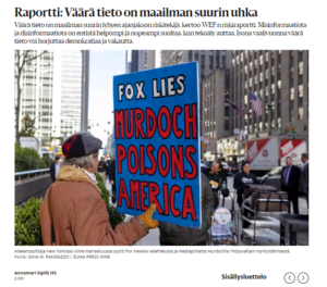 Tämä on Mauno Koiviston ja Pertti Paasion viljelemä viisaus näyttää olevan tällä hetkellä globaaleissa riskiarvioissa ykköshuolen aihe ja tähän viittaa Hesarin Annamari Sipilän jutun otsikointi ja siihen liittyvä kuva.