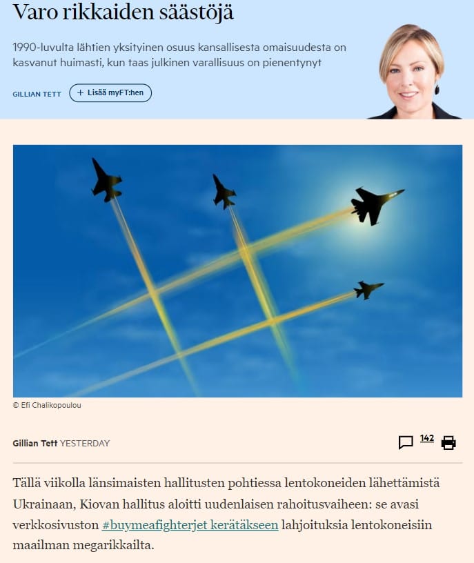 Gillian Tett kirjoittaa vakavasta aiheesta: Varallisuus keskittyy yksityisille rikkaille. Kolumni loppuu