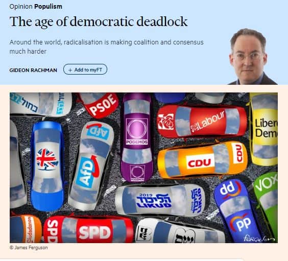 Gideon Rachman kirjoittaa FT:ssä , että useiden maiden poliittinen tilanne on ajautunut takalukkoon:
